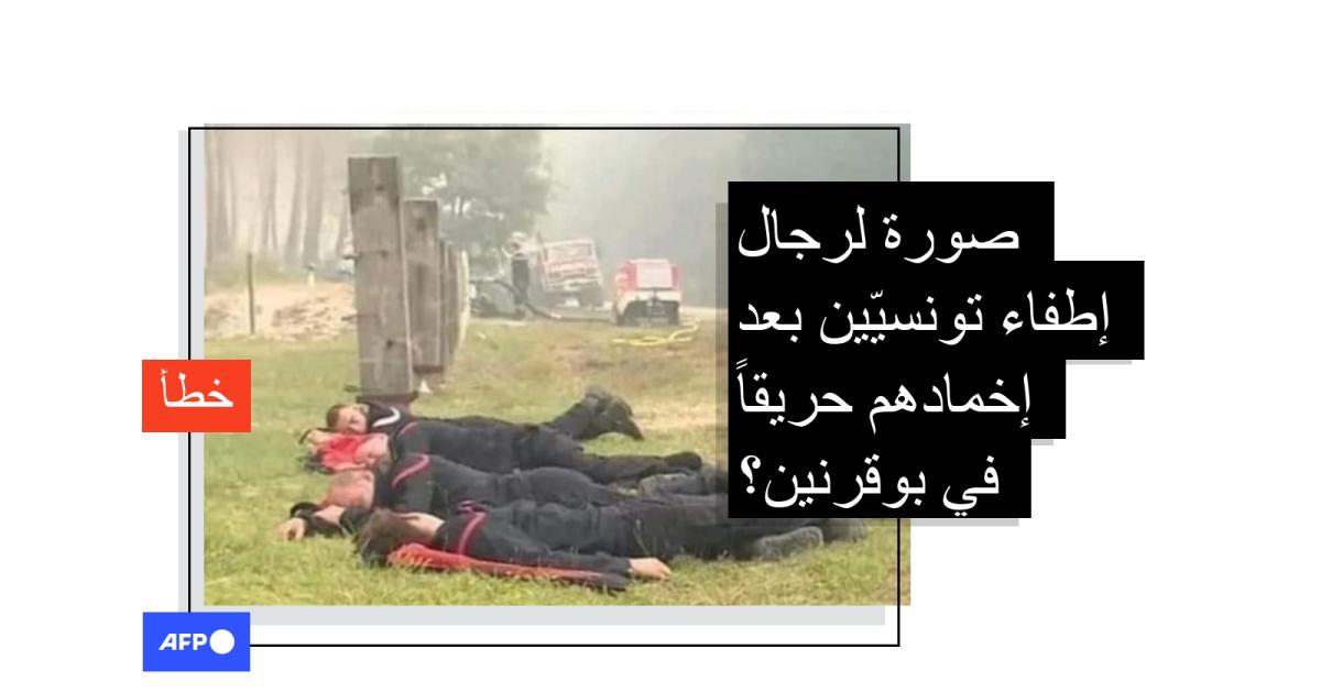 يبدو في الصورة رجال إطفاء ممدّدين على الأرض على مقربة من سياراتهم ويبدو دخان حرائق في الأفق. وعلّق ناشرو الصورة بالقول "إنها لرجال إطفاء تونسيين في استراحة محاربين بعد قضاء ليلة كاملة في إخماد حريق بوقرنين…".