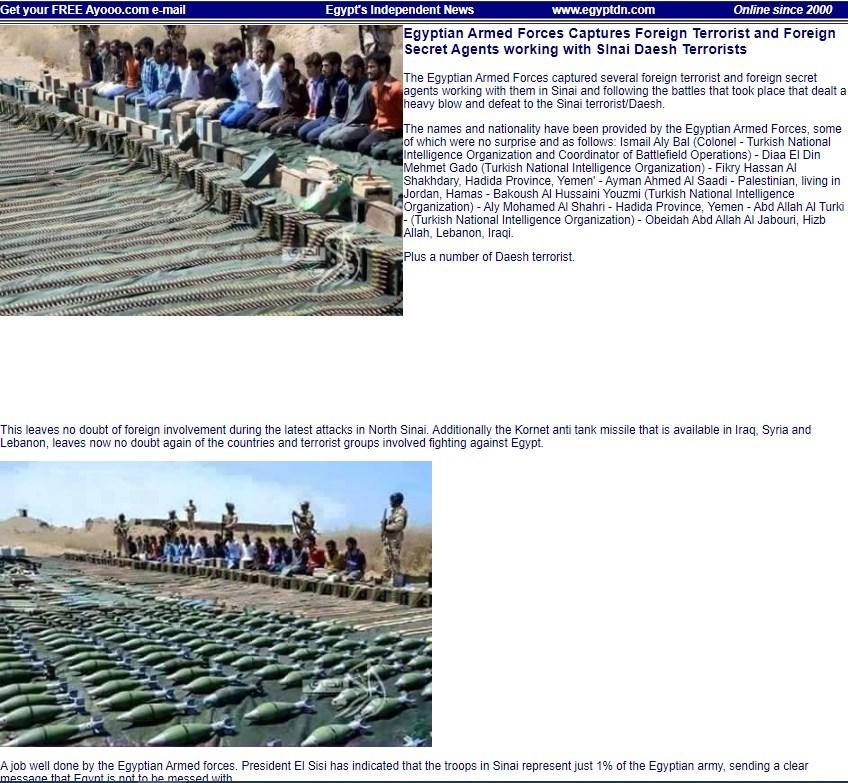 وبحسب المواقع الناشرة، تُظهر الصورتان عمليّة أمنيّة للقوات المصريّة في شبه جزيرة سيناء أسفرت عن توقيف عدد من عناصر تنظيم الدولة الإسلامية، من بينهم مصريون وأجانب، وذلك في تموز/يوليو من العام 2015.