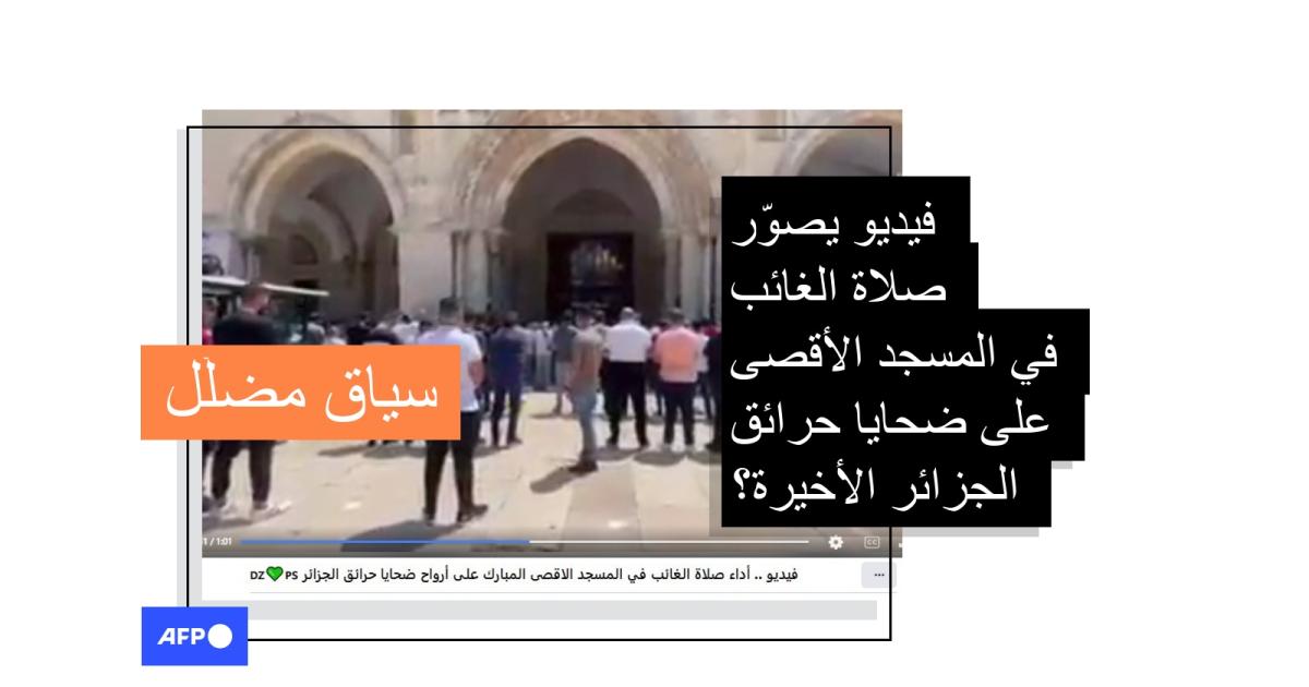 يصوّر الفيديو مصلّين في باحة مسجد. وكُتب في التعليق المرافق "أداء صلاة الغائب في المسجد الأقصى المبارك على أرواح ضحايا حرائق الجزائر".