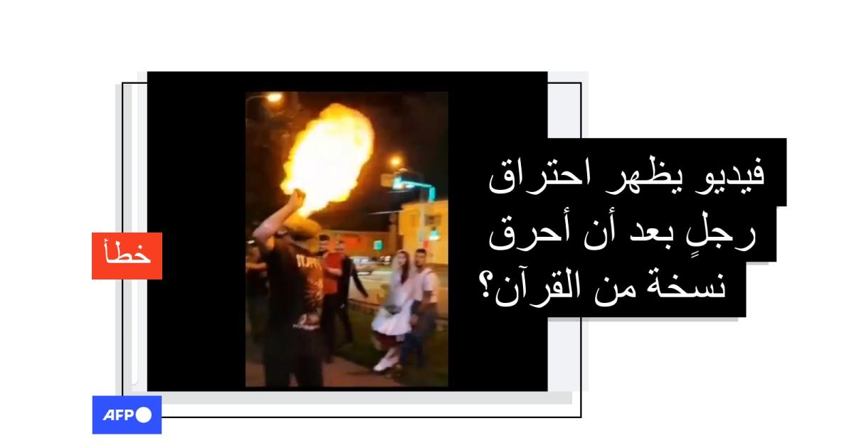 هذا الفيديو يظهر حدثين مختلفين ولا يعود لاحتراق رجلٍ بعد أن أحرق نسخة من القرآن