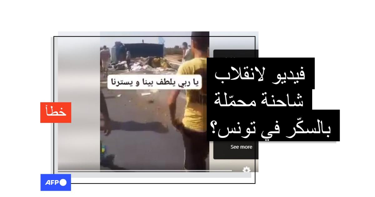الشاحنة المنقلبة في هذا الفيديو لم تكن تنقل السكّر بل ملفّات تعود لمستشفى تونسيّ