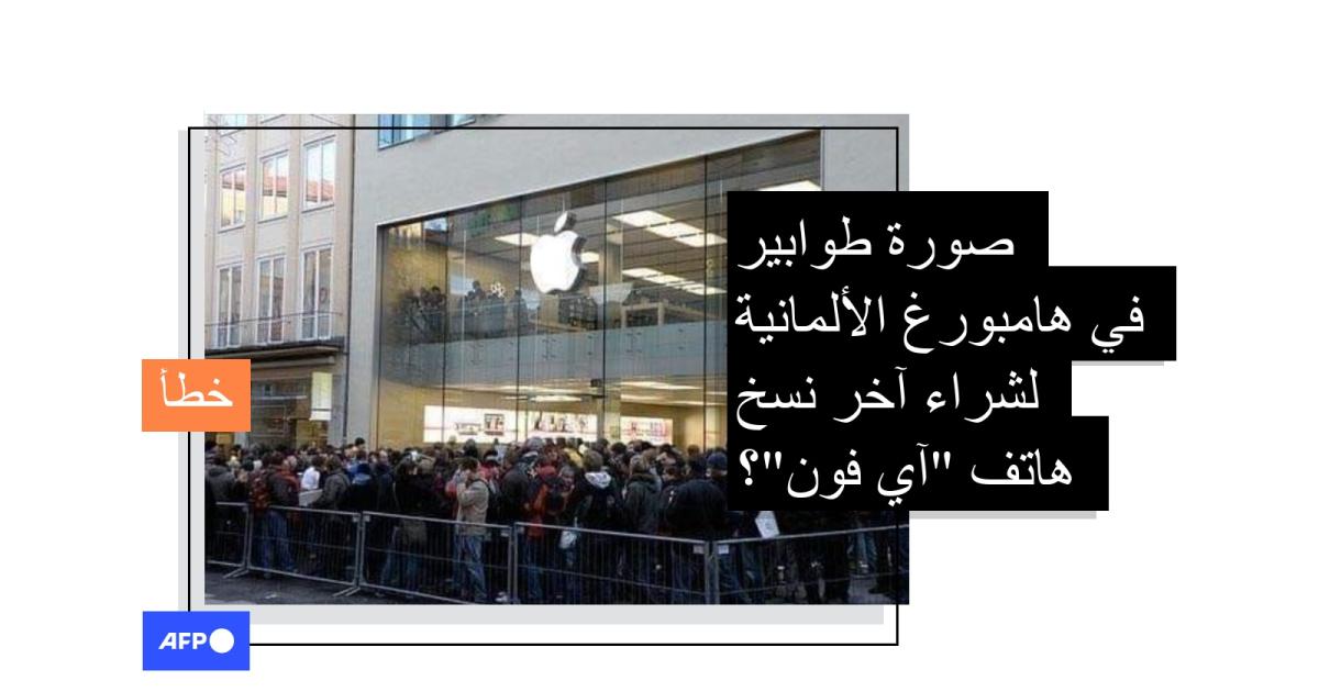 يبدو في الصورة طابور من الناس يقفون أمام واجهة زجاجيّة العلامة التجاريّة لشركة آبل. وعلّق مشاركو الصورة بالقول إنها في هامبورغ وهي "لطوابير انتظار طويلة أمام مقر شركة آبل لشراء هاتف آي فون 14 الجديد".