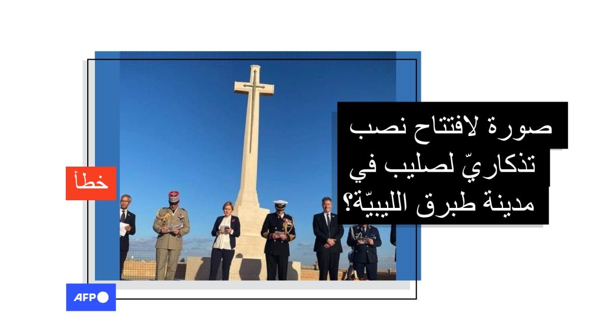هذه الصورة ليست من احتفال بافتتاح "نصب تذكاري للصليب" في طبرق بل من أمام مقبرة لقتلى الحرب العالميّة الثانية