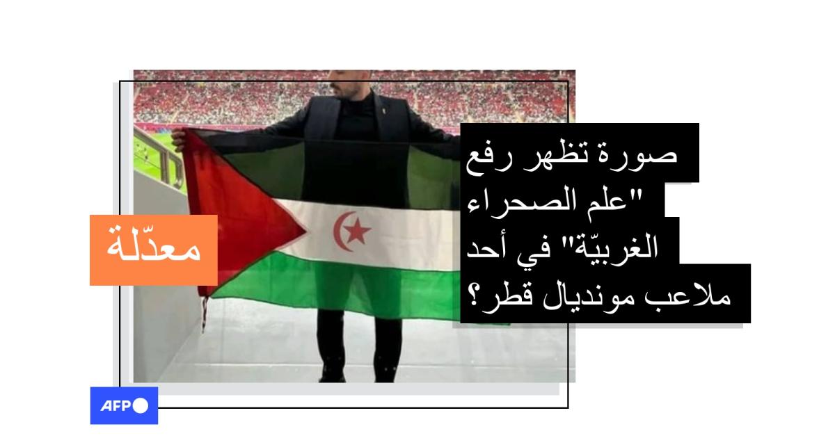 يبدو في الصورة رجل بلباس رسميّ يرفع ما يبدو أنه "علم الصحراء الغربيّة". وعلّق مشاركو الصورة بالقول "العلم الوطني الصحراوي من أرض الله الواسعة، كأس العالم قطر 2022".