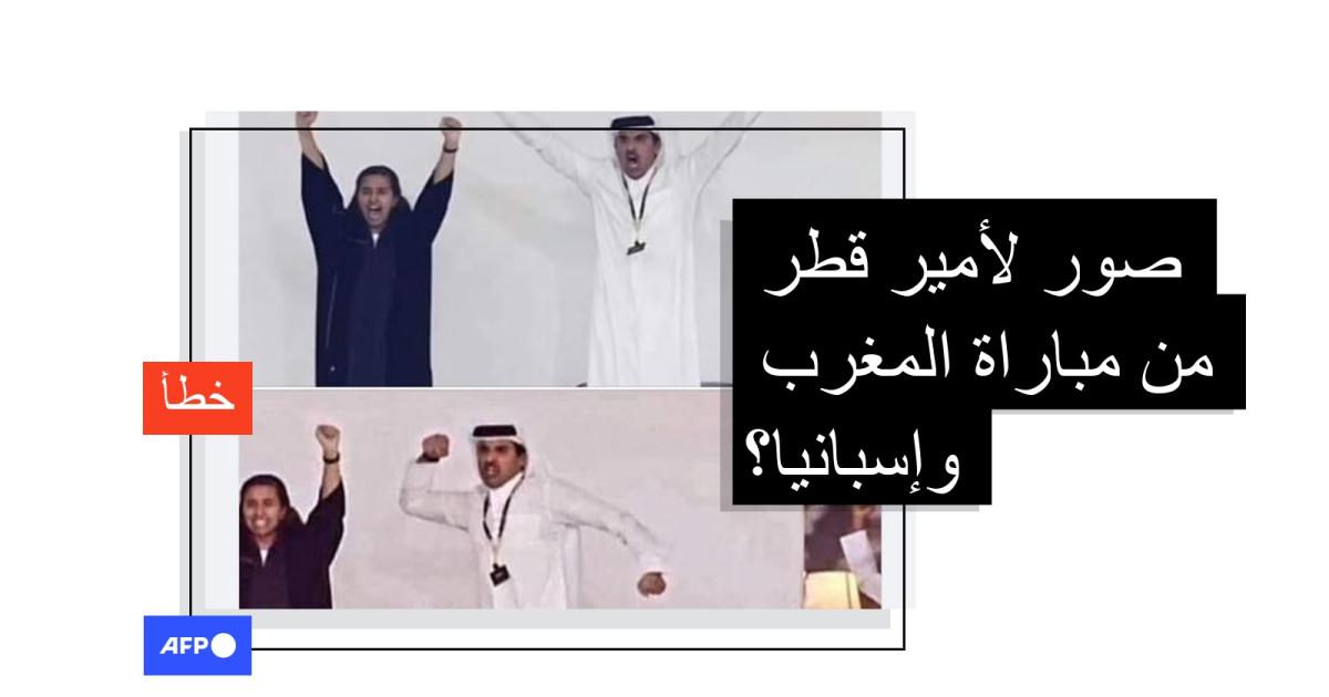 صحيح أن أمير قطر الشيخ تميم بن حمد آل ثاني تابع من أرض الملعب مباراة المغرب وإسبانيا الثلاثاء واحتفل بتأهل الفريق العربيّ، إلا أن الصور المتداولة قديمة.