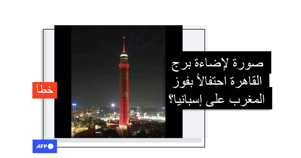 هذه الصورة قديمة ولا تظهر إضاءة برج القاهرة بعلم المغرب احتفالاً بفوزه على إسبانيا في المونديال