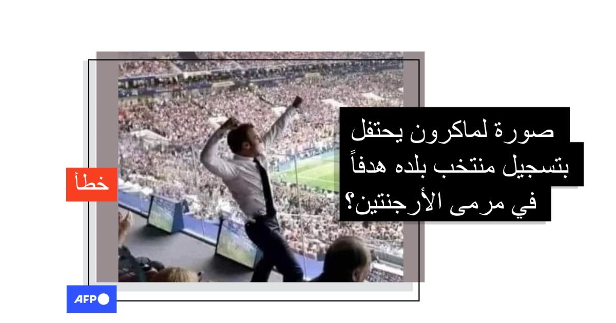 هذه الصورة لا تُظهر الرئيس الفرنسي محتفلاً بتسجيل منتخب بلاده هدفاً في مونديال قطر 2022