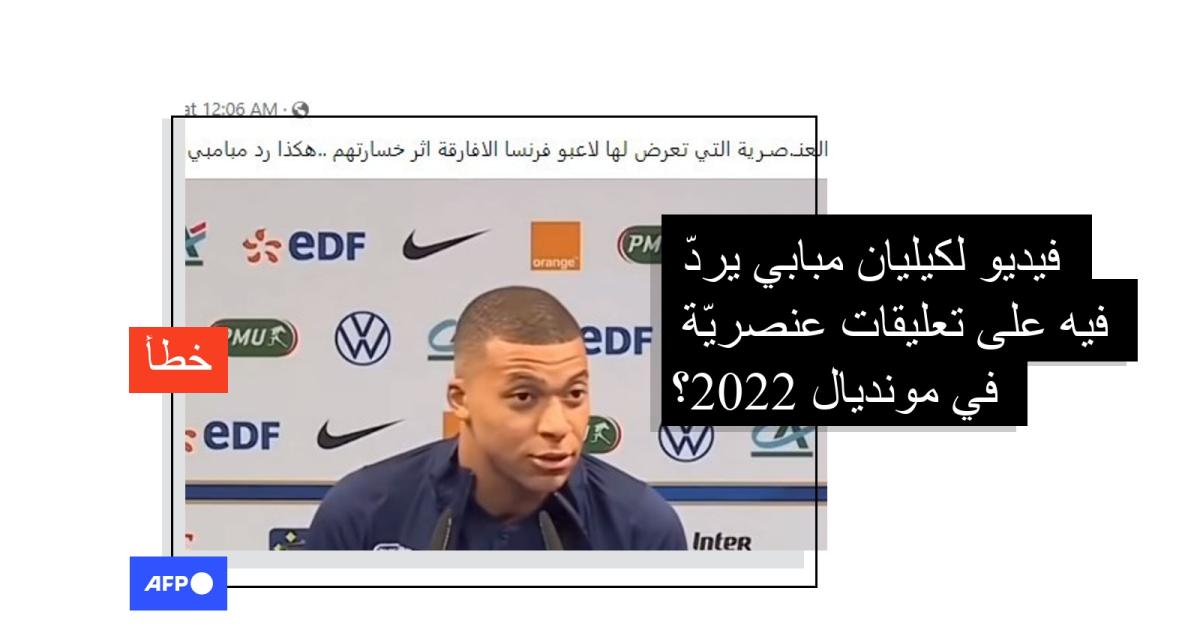 ما يقوله مبابي في الفيديو لا علاقة له بالترجمة المُختلقة التي رُكّبت عليه.