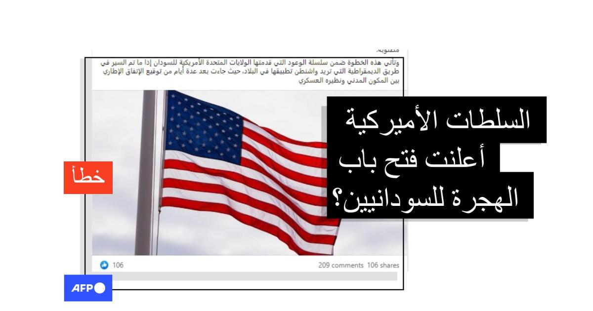 لكن هذا الادّعاء بأن السلطات الأميركية فتحت باب الهجرة للسودانيين غير صحيح.
