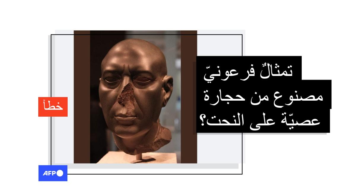 يظهر في الصورة ما يبدو أنه تمثال مصري قديم مكسور من جهة الأنف.