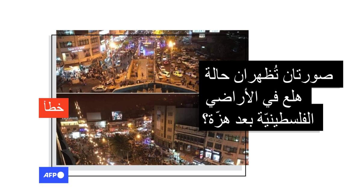 هاتان الصورتان لا تُظهران حالة هلع في الأراضي الفلسطينيّة بعد هزّة بل هما مصوّرتان قبل سنوات