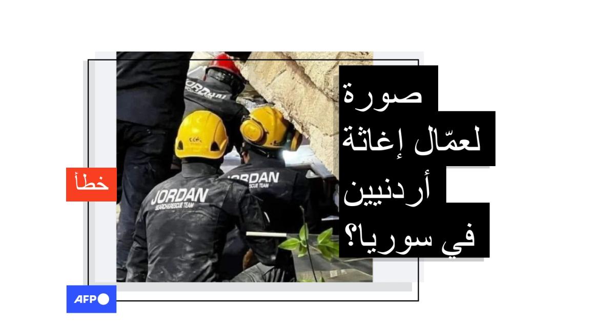 هذه الصورة لرجال إنقاذ أردنيين لم تلتقط في سوريا بعد الزلزال الأخير بل في الأردن قبل أشهر