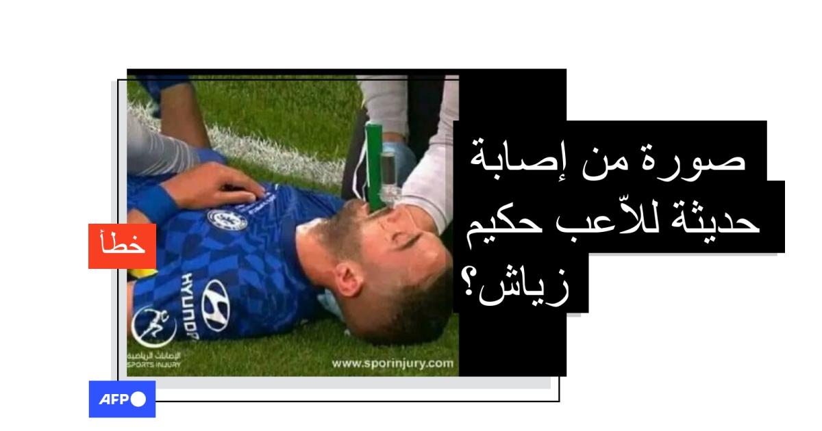 نشرت صفحات على مواقع التواصل الاجتماعي صورة للاعب كرة القدم المغربي حكيم زياش مع الادعاء أنها لإصابة حديثة تعرّض لها. إلا أن الصورة ملتقطة في الحقيقة سنة 2021 ولم يتعرض اللاعب لأي إصابة في مبارياته الأخيرة.
