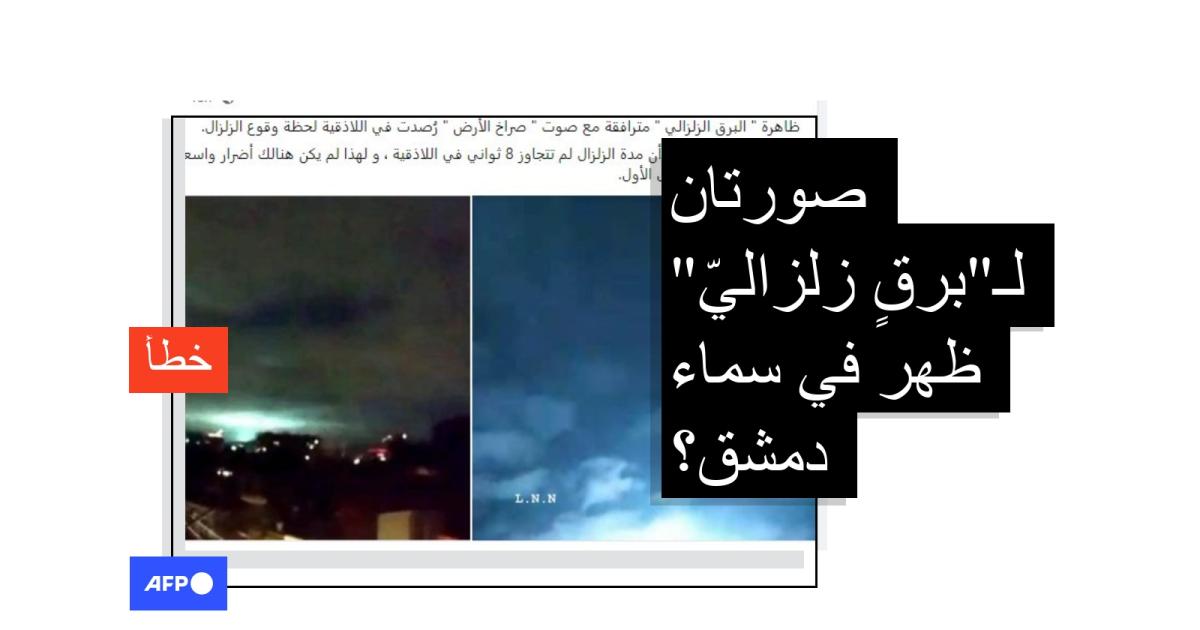 يظهر في الصورة الأولى برقٌ يضيء السماء بلونٍ أزرق وفي الثانية برقٌ في أفق مدينة ليلاً. وجاء في التعليق المرافق "ظاهرة البرق الزلزالي مترافقة مع صوت صراخ الأرض رُصدت في اللاذقية لحظة وقوع الزلزال".