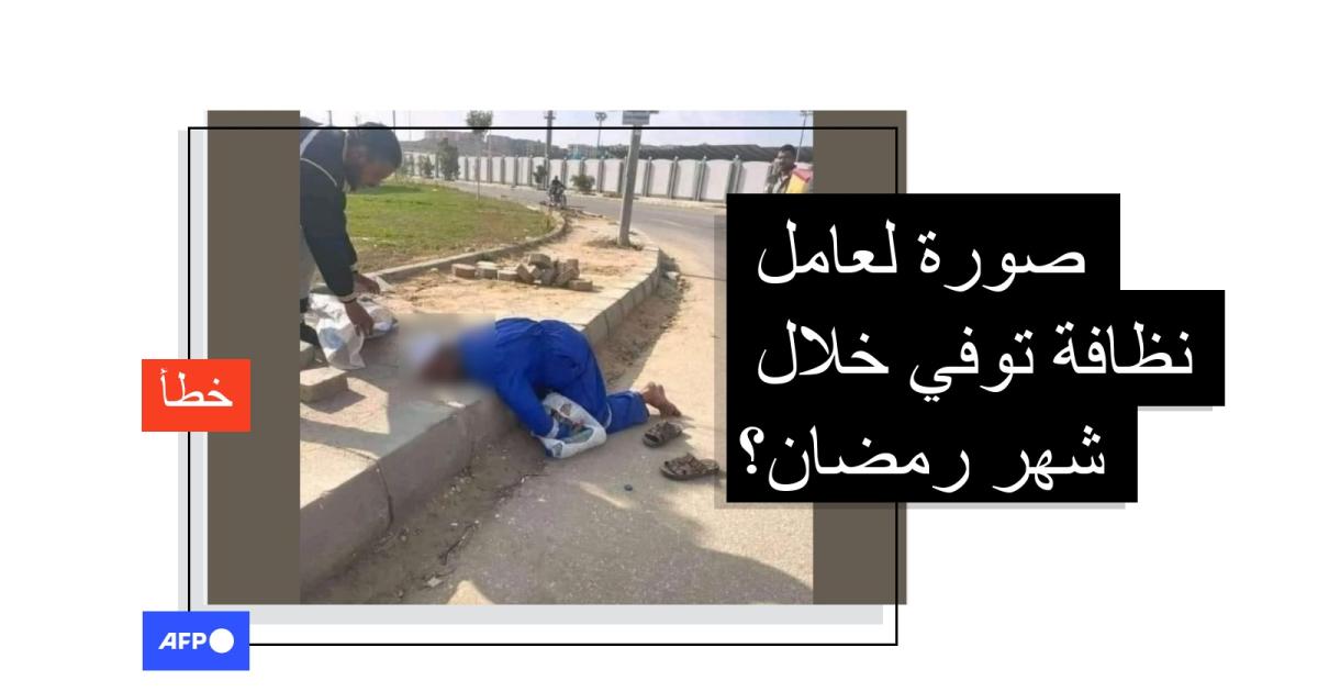 تداولت صفحات على مواقع التواصل الاجتماعي صورة قالت إنها لعامل نظافة توفي وهو يؤدي عمله بسبب ارتفاع درجات الحرارة في رمضان الجاري. لكن الادّعاء مضلّل والصورة لشخص توفّي قبل أشهر.