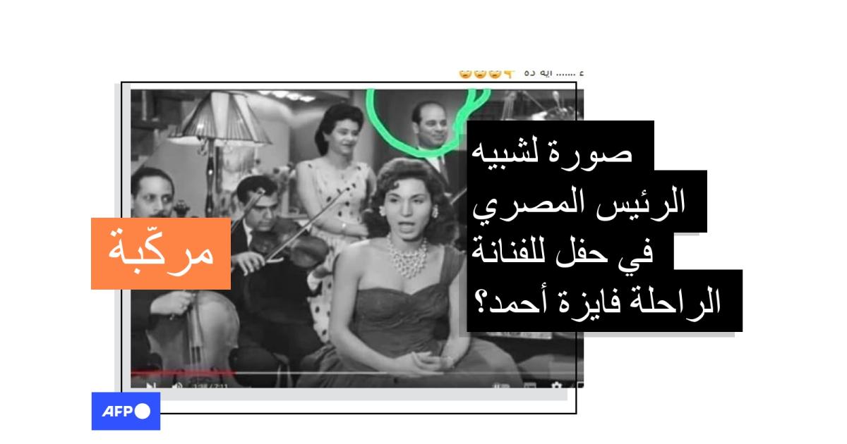 تداول مستخدمون لمواقع التواصل الاجتماعي صورة يدّعي ناشروها أنّها تظهر موسيقياً شبيهاً بالرئيس المصري عبد الفتّاح السّيسي في حفل موسيقيّ للفنانة الراحلة فايزة أحمد، إلا أنّ هذه الصورة مركّبة.