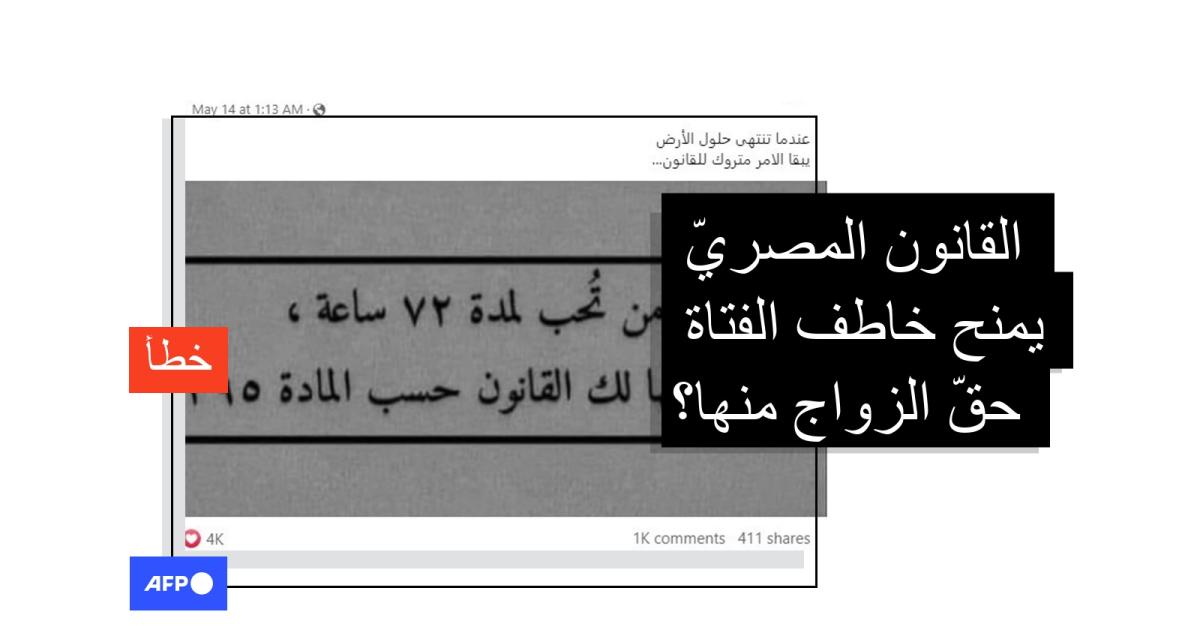 المنشورات المتداولة عن منح القانون المصري خاطف الفتاة حقّ الزواج منها غير صحيحة