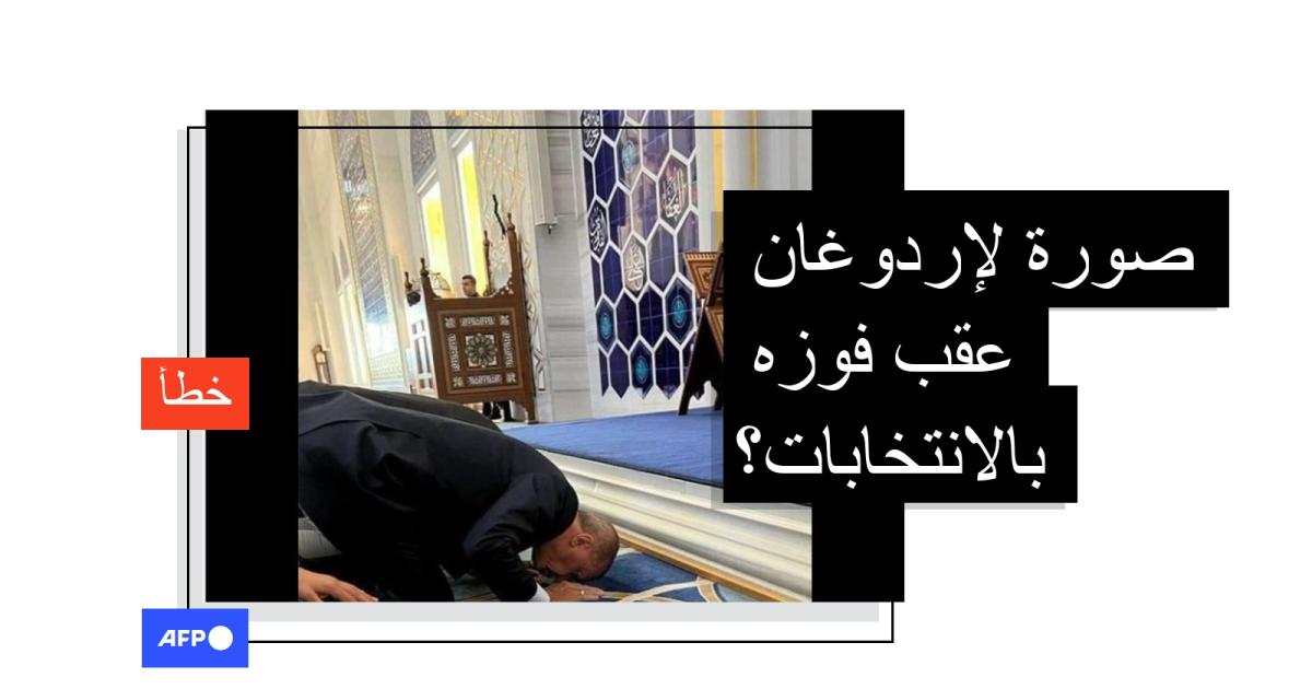 وجاء في التعليقات المرافقة أن الصورة تُظهر "سجدة شكر للرئيس التركي بعد إعلان فوزه في الانتخابات الرئاسية".