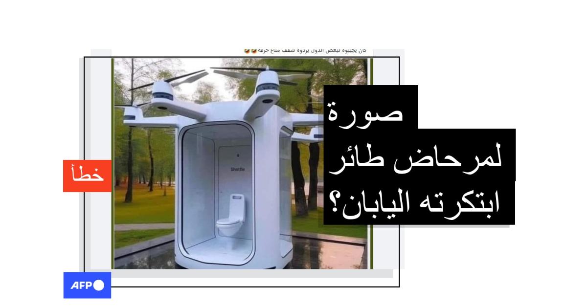 تنتشر على مواقع التواصل الاجتماعي صورة يدّعي ناشروها أنها لابتكار ياباني جديد عبارة عن مرحاض طائر، في مؤشّر مزعوم إضافي على التطوّر الكبير في ما صار يسمّى بـ"كوكب اليابان". إلا أنّ الصورة، وعلى غرار عشرات الصور المتداولة حديثاً على مواقع التواصل، ليست حقيقيّة وهي مولّدة بواسطة برنامج ذكاء اصطناعيّ.