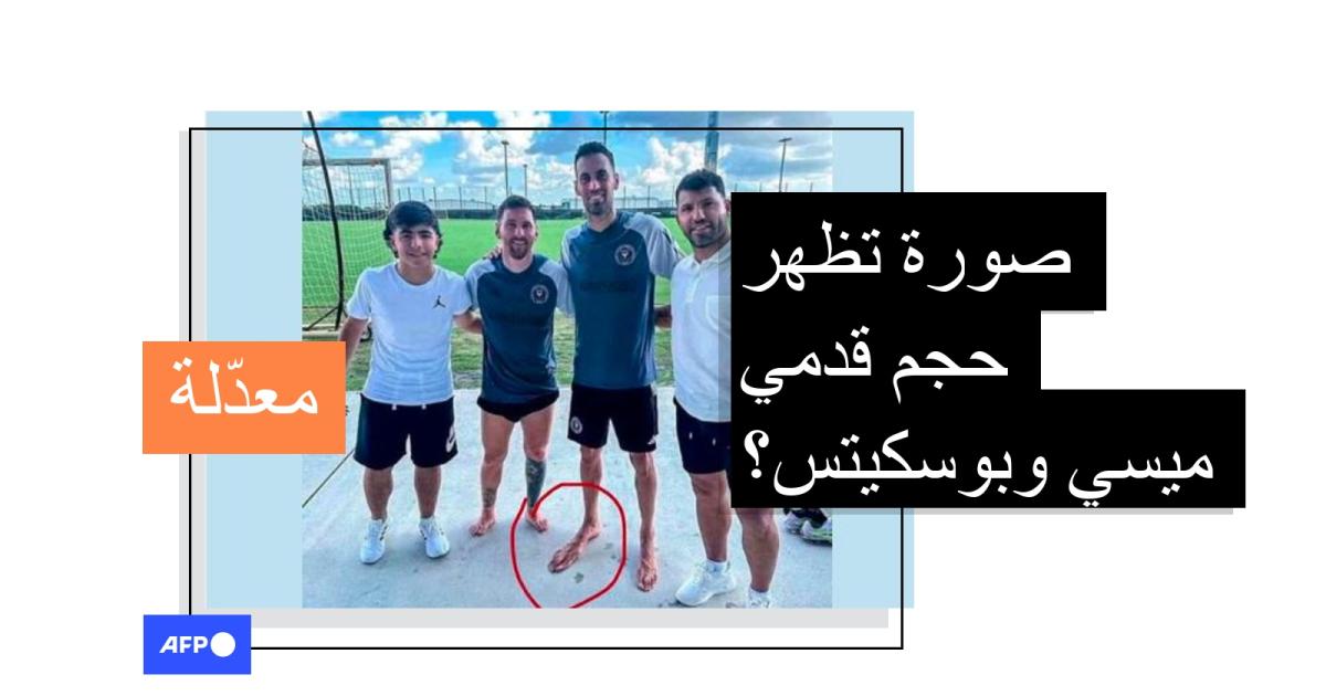 يبدو في الصورة ليونيل ميسي وسيرجيو بوسكيتس المنضمّين إلى صفوف نادي إنتر ميامي، يتوسطان اللاعب الأرجنتيني السابق سيرجيو أغويرو إلى اليمين، وابنه إلى اليسار. ويلفت الانتباه حجم قدم بوسكيتس لناحية ضخامتها في حين أن قدم ميسي تبدو صغيرة جداً.