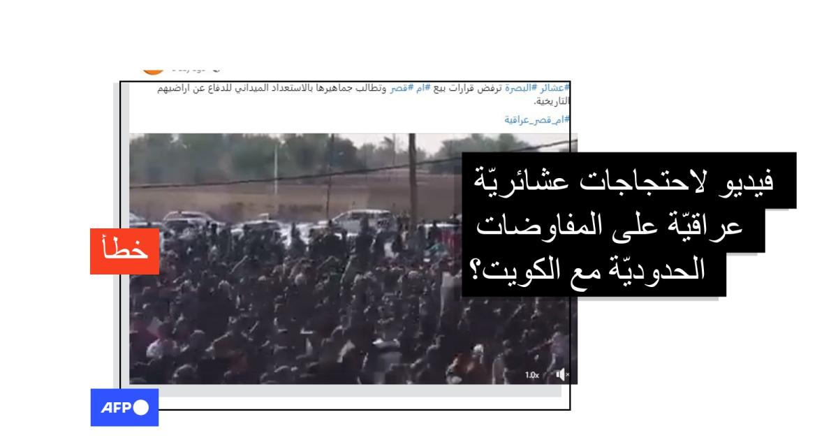 وجاء في التعليقات المرافقة أن الفيديو يُظهر تظاهرة لعشائر محافظة البصرة الواقعة في جنوب العراق على الحدود مع الكويت، احتجاجاً على مسار التفاوض الحدودي بين بغداد والكويت.