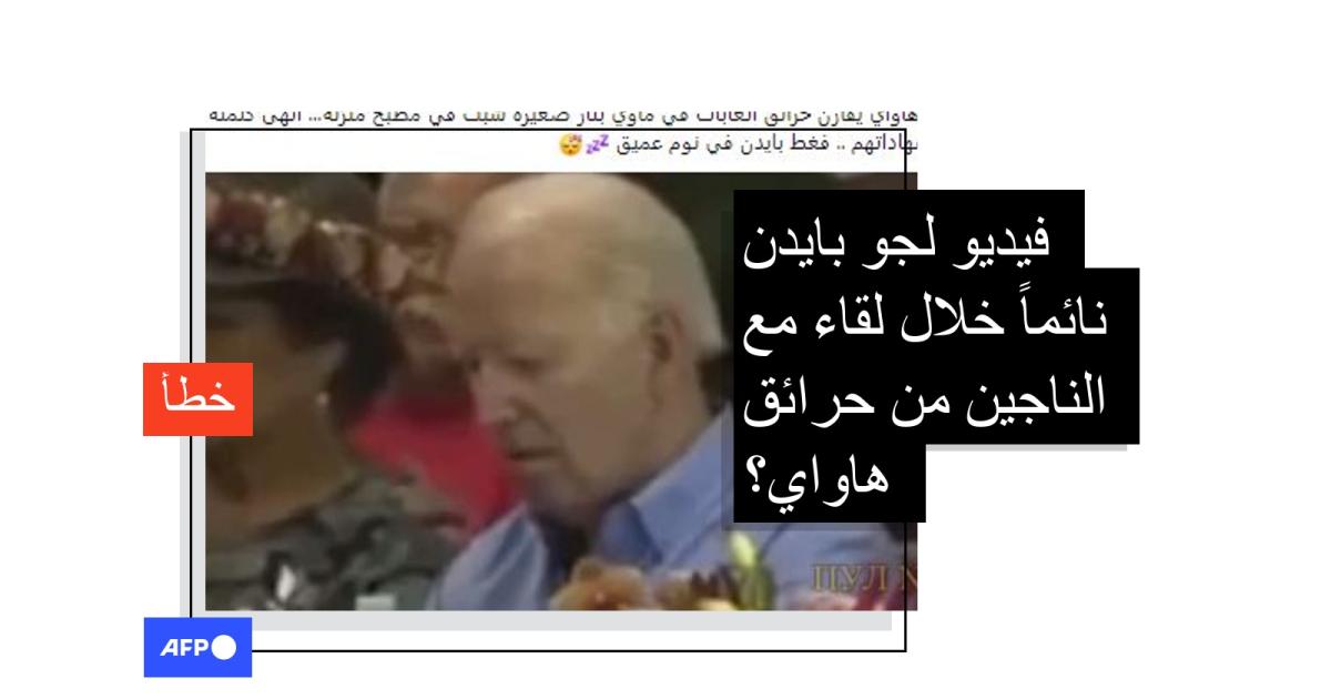 لكن على عكس ما روّجت له المنشورات المضلّلة، فإن الرئيس الأميركي لم يغفُ خلال لقائه مع الناجين من الحرائق في ماوي.