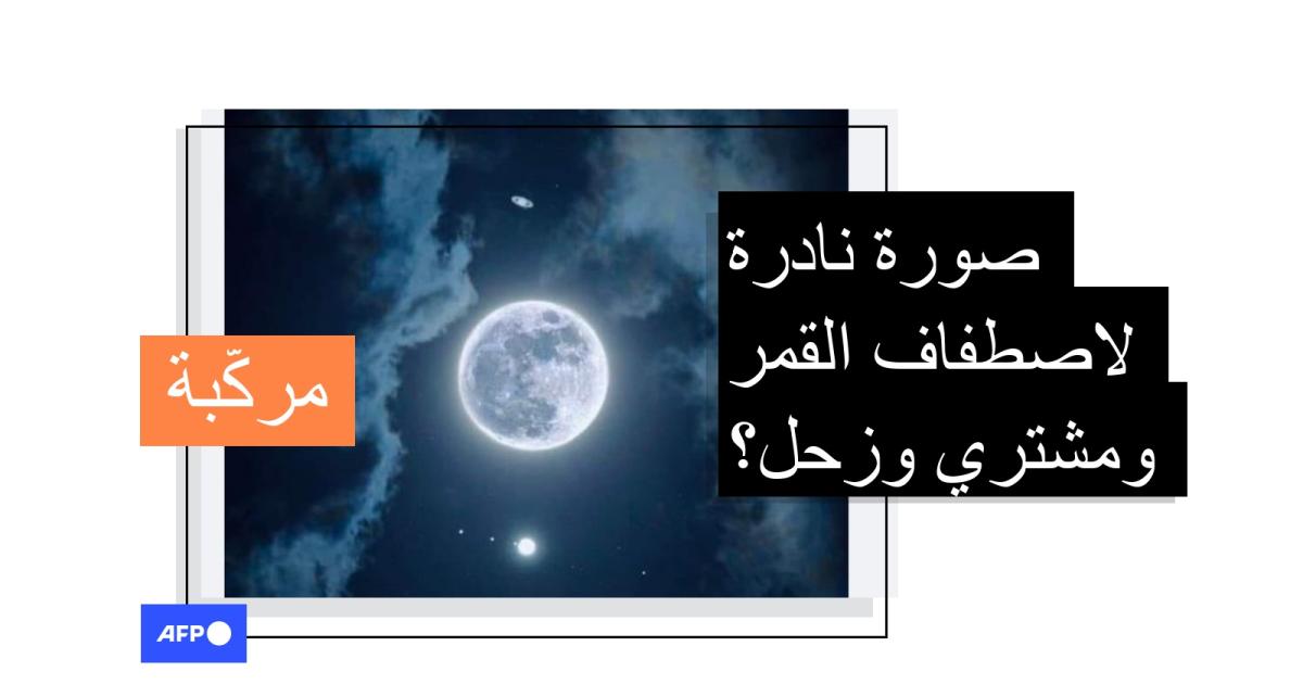 يتداول مستخدمون لمواقع التواصل الاجتماعي صورة يدّعي ناشروها أنها لظاهرة اصطفاف نادرة للقمر وكوكبي المشتري وزحل. إلا أنّ الادعاء خطأ، والصورة عبارة عن عمل فنيّ.