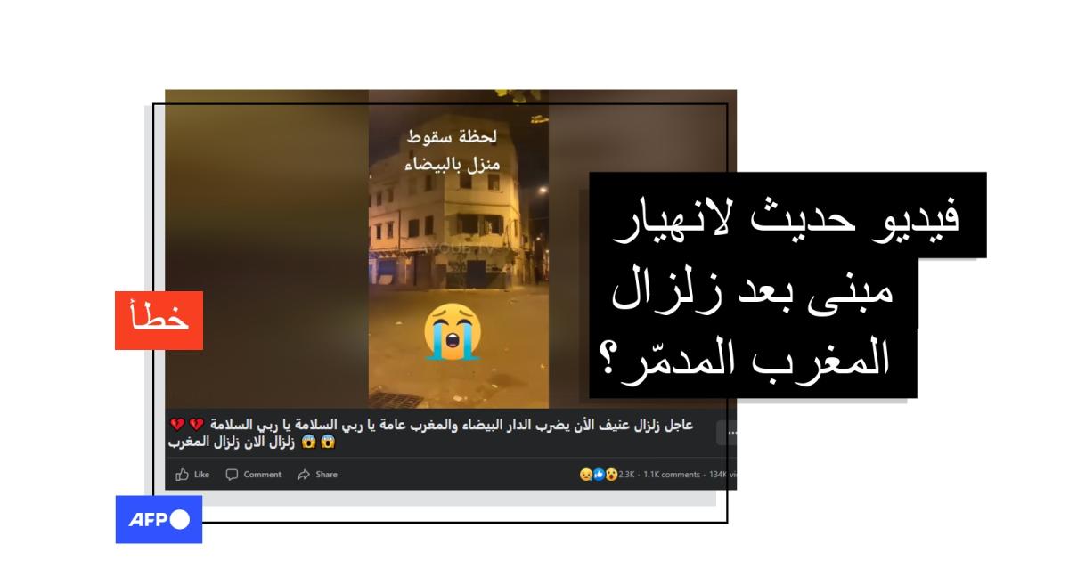 بدأ انتشار هذا الفيديو بهذه الصيغة على فيسبوك حاصداً مئات المشاركات، بعد ساعات على وقوع زلزال بلغت قوّته 7 درجات ليل الجمعة السبت في مدينة مراكش التي تعتبر مقصداً سياحياً كبيراً.