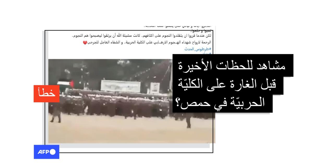 هذا الفيديو لا يصوّر اللحظات الأخيرة قبل الغارة على الكليّة الحربيّة في حمص في سوريا بل هو منشور قبل سنوات