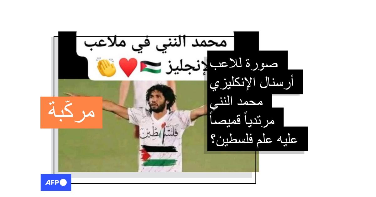 هذه الصورة لمحمد النني مرتدياً قميصاً عليه علم فلسطين مركّبة