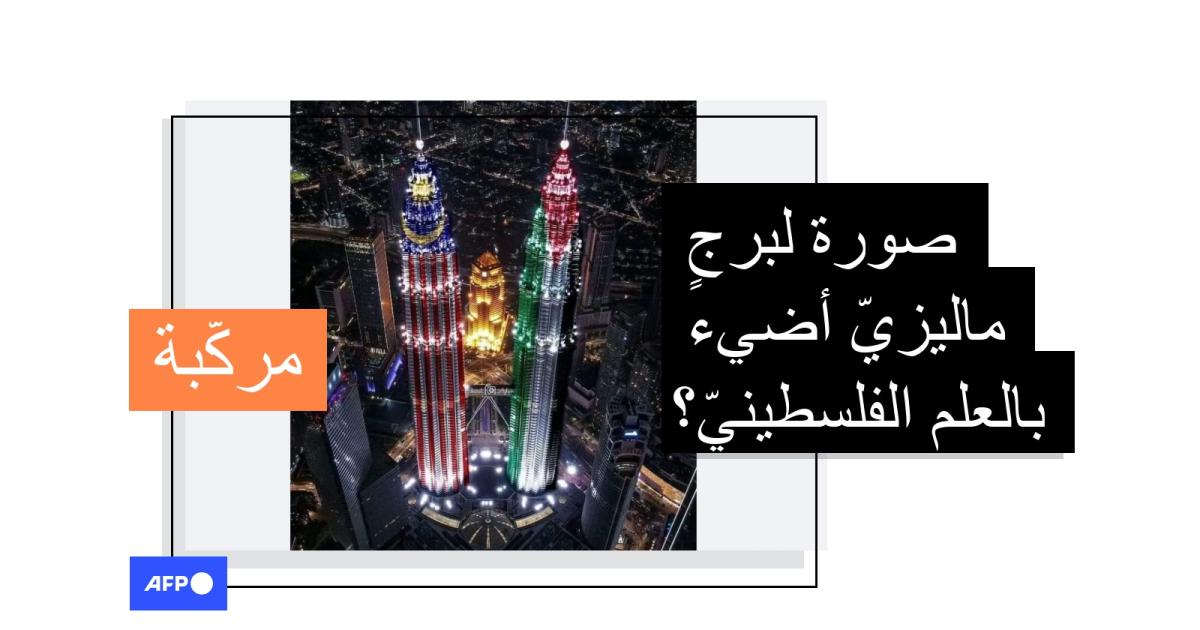 هذه الصورة مركّبة وليست لإضاءة برجٍ ماليزيّ بالعلم الفلسطينيّ