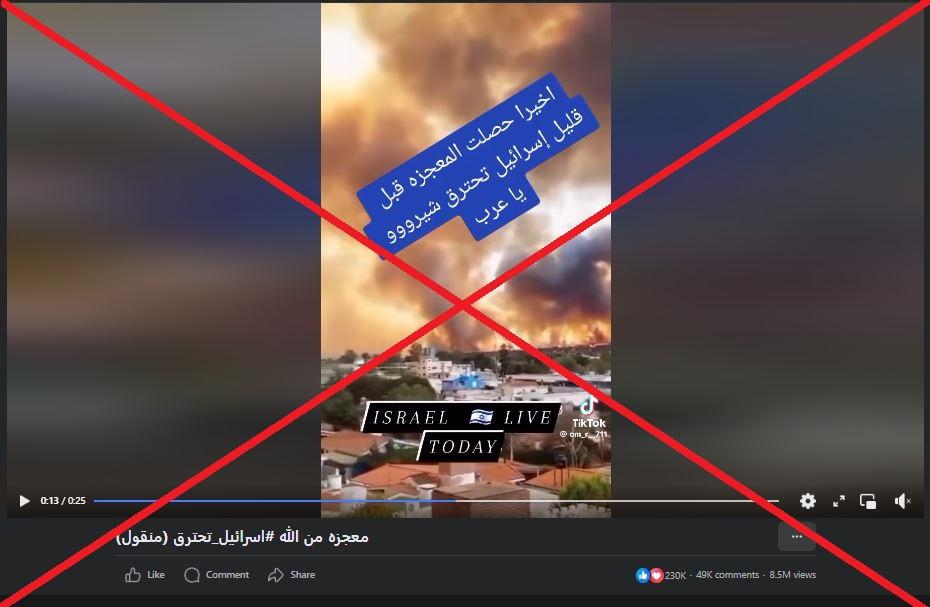 وجاء في التعليقات المرافقة "إسرائيل تحترق اليوم".