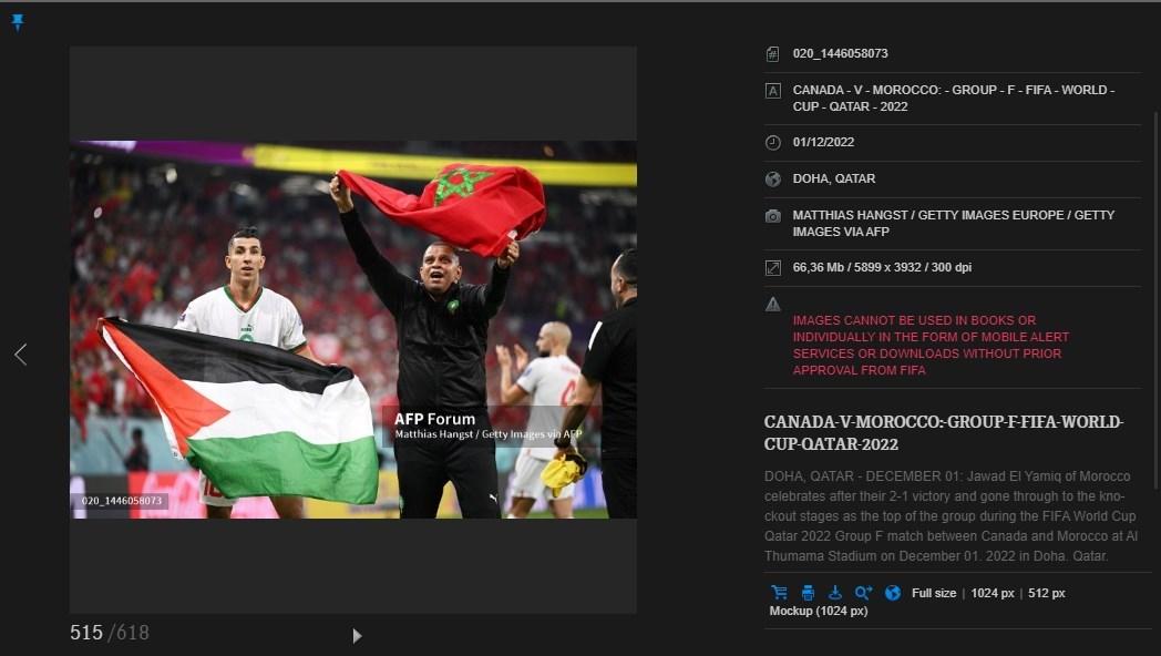 وفيما يلي صورة أخرى للاّعب حاملاً العلم الفلسطيني وزّعتها وكالة فرانس برس في الأول من شهر ديسمبر/كانون الأول سنة 2022.