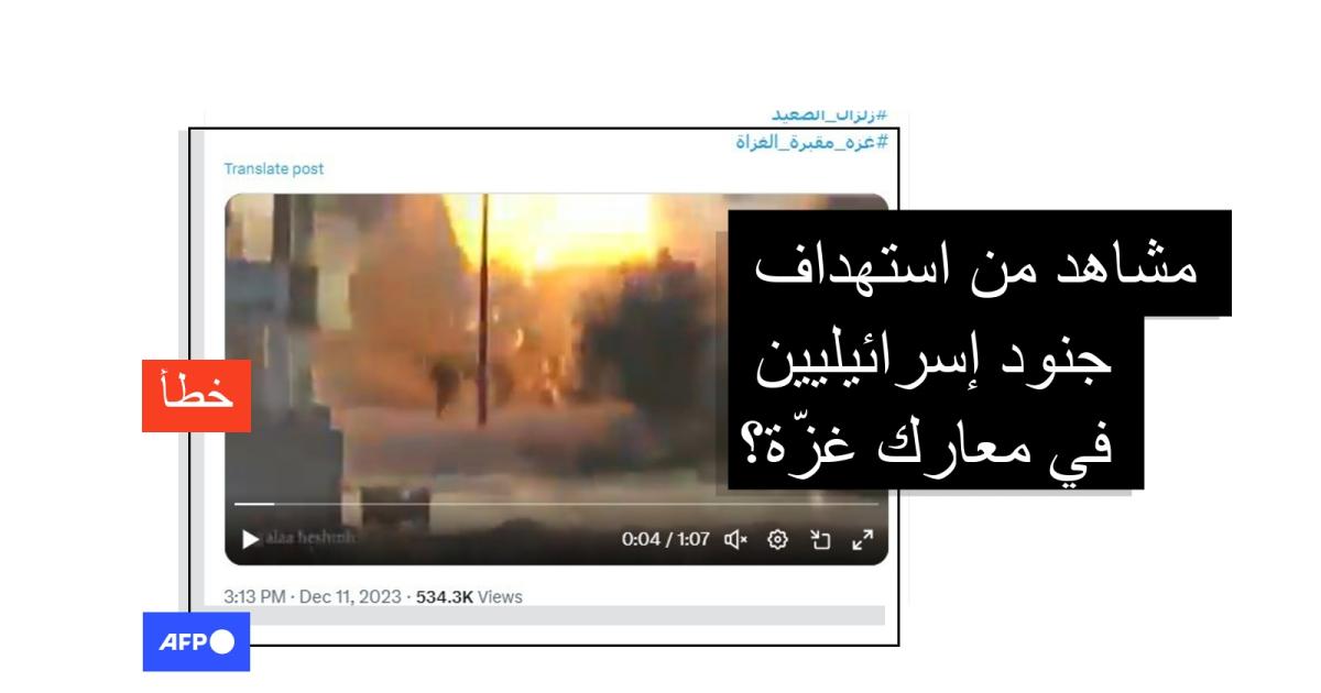 في هذا السياق، وفي ظلّ المعارك المحتدمة في القطاع، ظهر هذا الفيديو الذي قيل إنّ مقاطعه الأربعة تُظهر استهداف جنود إسرائيليين هناك، لكن هذا غير صحيح، والمشاهد كلّها مصوّرة قبل سنوات في بلدان أخرى.