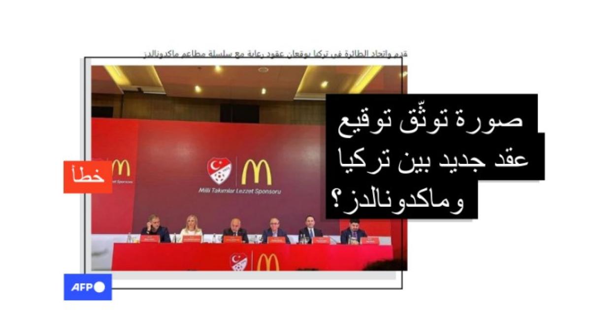 يبدو في الصورة مجموعة من الأشخاص يجلسون في ما يبدو أنّه مؤتمر صحفيّ. ويظهر في الخلفيّة شعار ماكدونالدز وشعار اتحاد تركيا لكرة القدم. وعلّق الناشرون بالقول "اتحاد كرة القدم واتحاد الطائرة في تركيا يوقعان عقود رعاية مع سلسلة مطاعم ماكدونالدز".