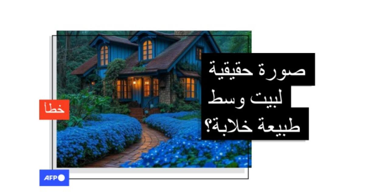 هذه الصورة لبيت أزرق في حديقة زرقاء مولّدة بالذكاء الاصطناعي وليست حقيقية