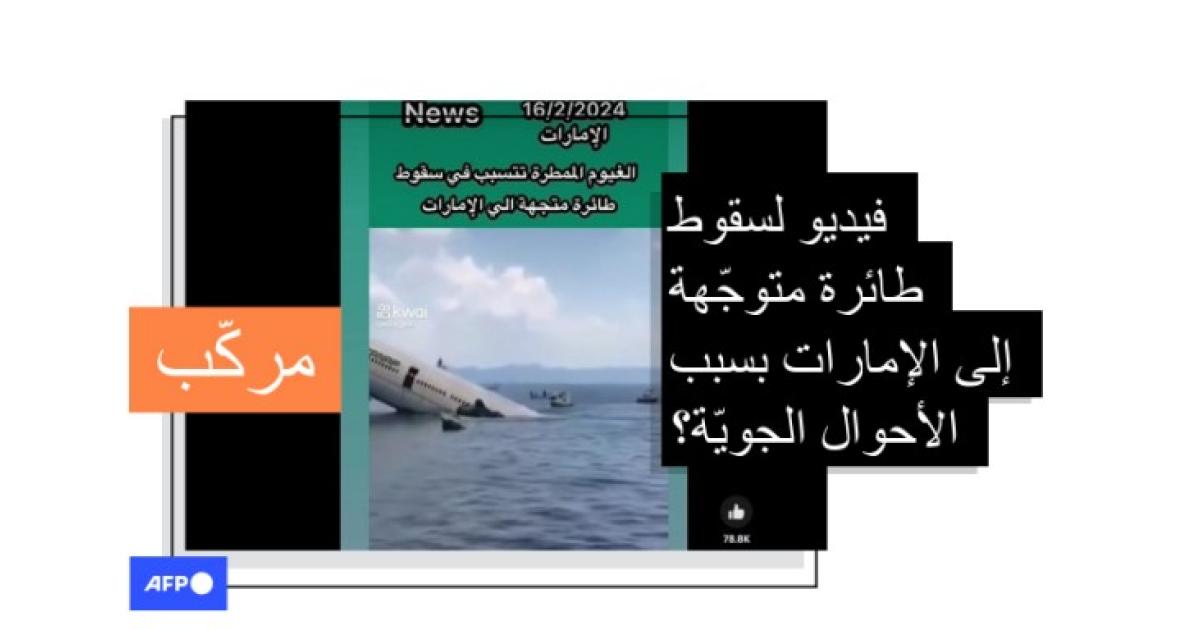 وعلّق ناشرو هذه المقاطع بالقول "الغيوم الممطرة تتسبّب بسقوط طائرة متجهة إلى الإمارات" مع الإشارة إلى أنّ الحادث حصل في 16 شباط/فبراير 2024.