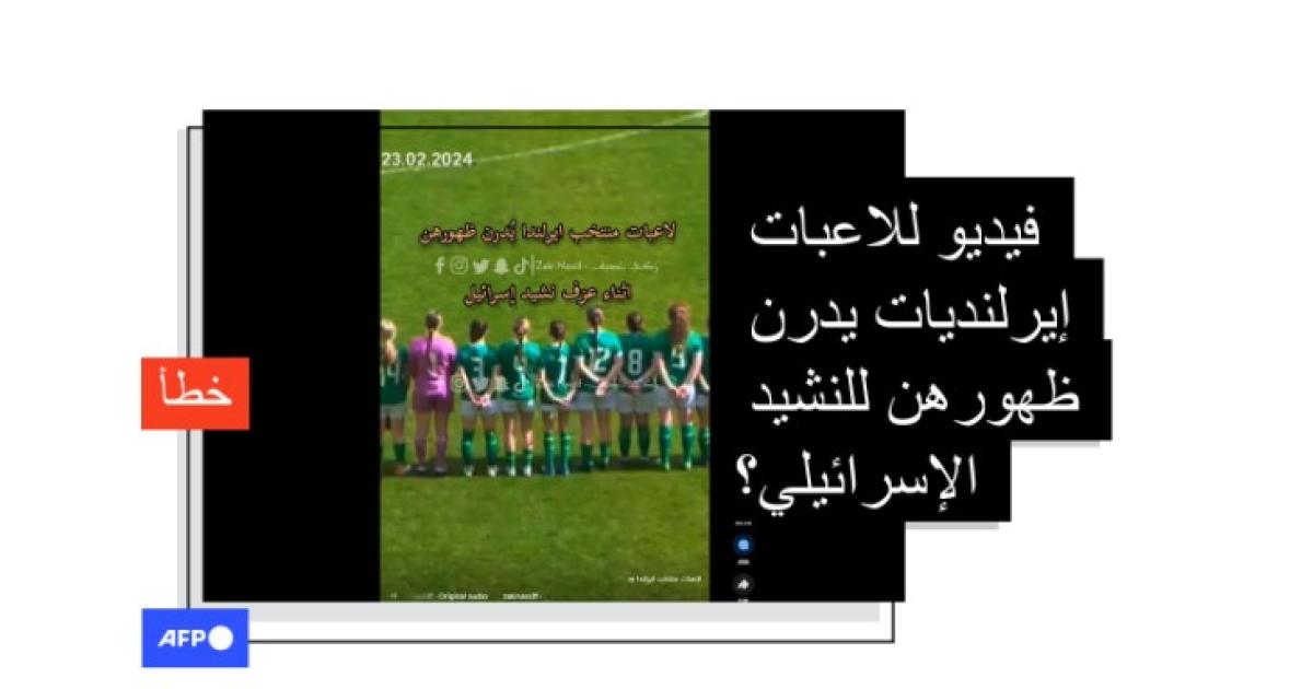 آلاف المشاركات والتعليقات حصدها فيديو على مواقع التواصل الاجتماعي ادعى ناشروه أنه يصوّر لاعبات إيرلنديات يدرن ظهورهن أثناء عزف النشيد الإسرائيلي في مباراة كرة قدم جمعت البلدين الأسبوع الماضي. إلا أن الادعاء غير صحيح، فاللاعبات الإيرلنديات لم يدرن ظهورهن خلال بثّ النشيد الإسرائيلي بل أداروا وجوههن لعلم بلادهن أثناء النشيد الوطني الإيرلندي، كما درجت العادة لدى المنتخبات الإيرلنديّة منذ سنوات.