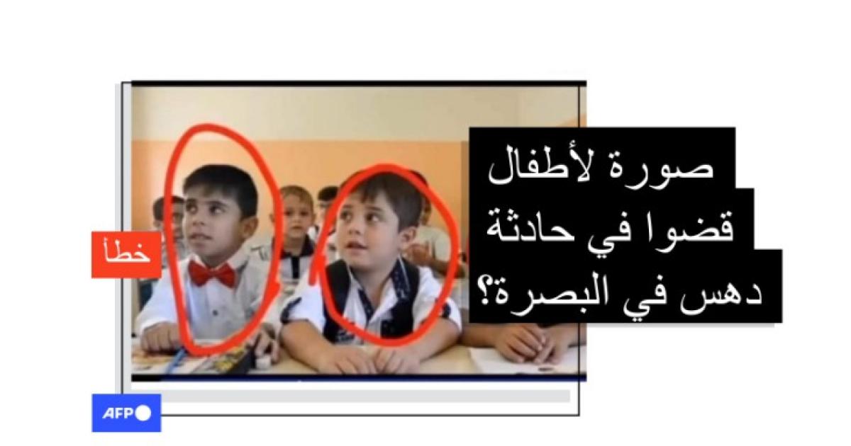 وجاء تداول الصورة غداة مقتل ستة طلاب على الأقل وجرح 14 آخرين الثلاثاء بعدما دهستهم شاحنة لدى خروجهم من المدرسة في محافظة البصرة في جنوب العراق، وفق ما أعلنت السلطات.
