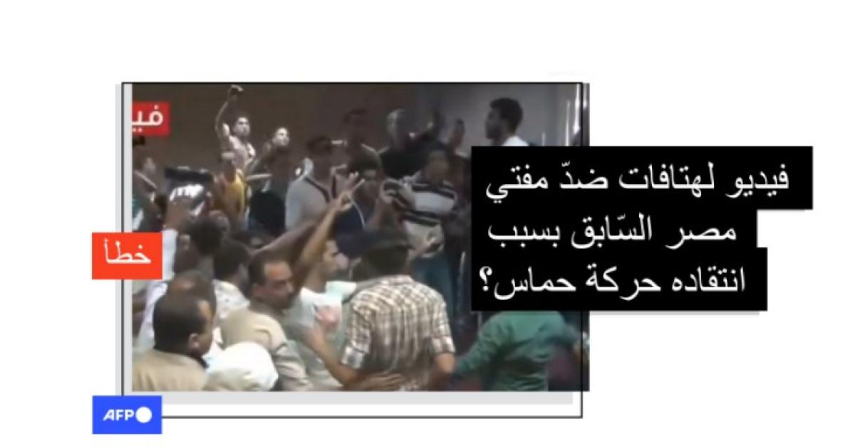 لكن الفيديو لا يظهر احتجاجاً ضدّ مفتي الديار المصريّة السابق بسبب تصريح له عن حركة حماس.