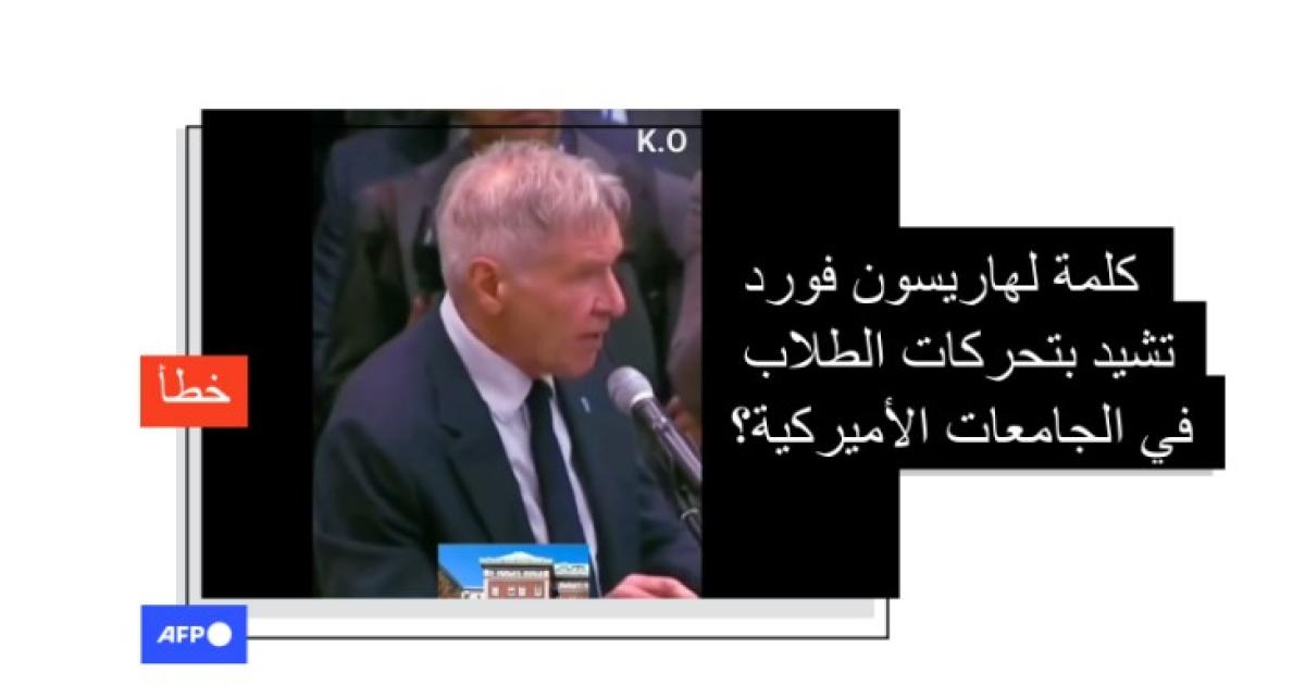 هذا الفيديو يظهر هاريسون فورد متحدّثاً عن الناشطين البيئيين الشباب عام 2019 ولا علاقة له بالتظاهرات الطلابية المؤيدة للفلسطينيين