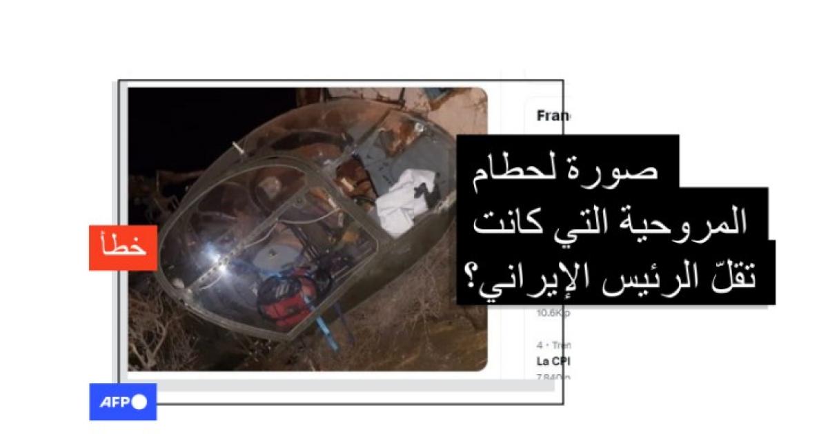بدأ تداول هذه الصورة على فيسبوك وإكس تزامناً مع إعلان السلطات العثور على المروحية التي كانت تقل الرئيس ابراهيم رئيسي والوفد المرافق له غداة تعرضها لـ"حادث" في منطقة جبلية وعرة بشمال غرب البلاد وعدم رصد "أي علامة" حياة في الحطام.