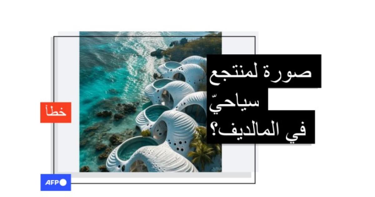 هذه الصورة ليست لمنتجع سياحيّ حقيقيّ على شكل صدفة في المالديف بل هي مصمّمة بواسطة الذكاء الاصطناعي