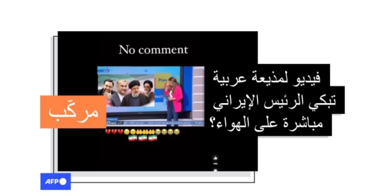 يُظهر الفيديو المتداول مقدّمة برامج عربيّة ذات لهجة تبدو سوريّة تبكي على الهواء ووراءها صورة الرئيس الإيراني ومن كان برفقته على متن المروحية.