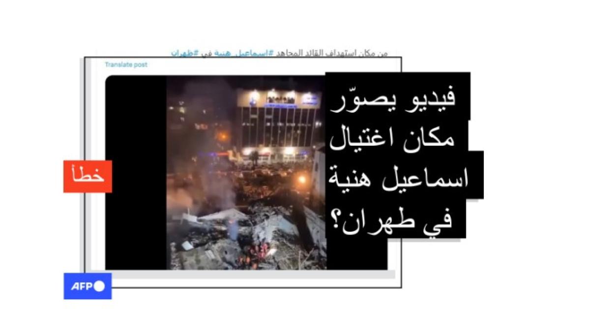 يصوّر الفيديو مبنى مدمّراً بالكامل يتصاعد الدخان منه ومن يبدو أنّهم فرق إنقاذ وسط الحطام. وعلّق ناشرو الفيديو بالقول إنّه من "مكان استهداف القائد المجاهد أبو العبد (اسماعيل هنيّة) في طهران…".