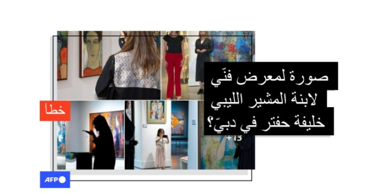 لكن لا يمكن العثور في مصدر مُعتبر على أيّ خبر عن إقامة أسماء خليفة حفتر معرضاً فنياً في دبيّ. بل على العكس من ذلك، يُرشد إلى منصّات عربيّة فنّدت الخبر.