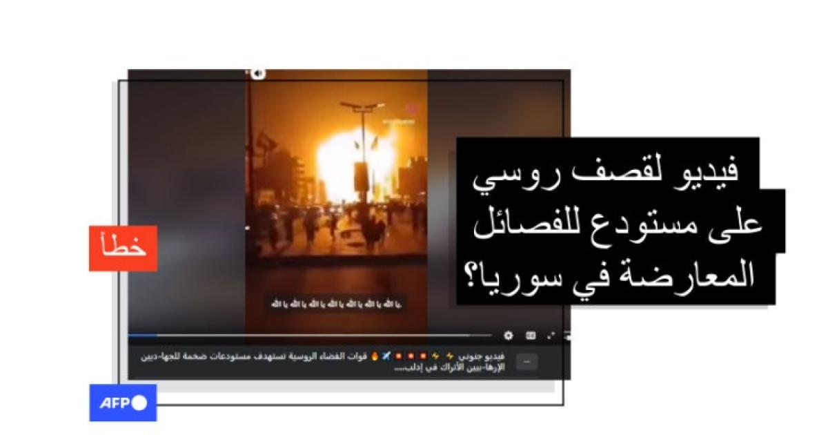 وأشارت التعليقات المرافقة إلى أن المشاهد تعود لاستهداف قوات عسكريّة روسيّة مستودعات ضخمة للفصائل المعارضة الموالية لأنقرة في إدلب.