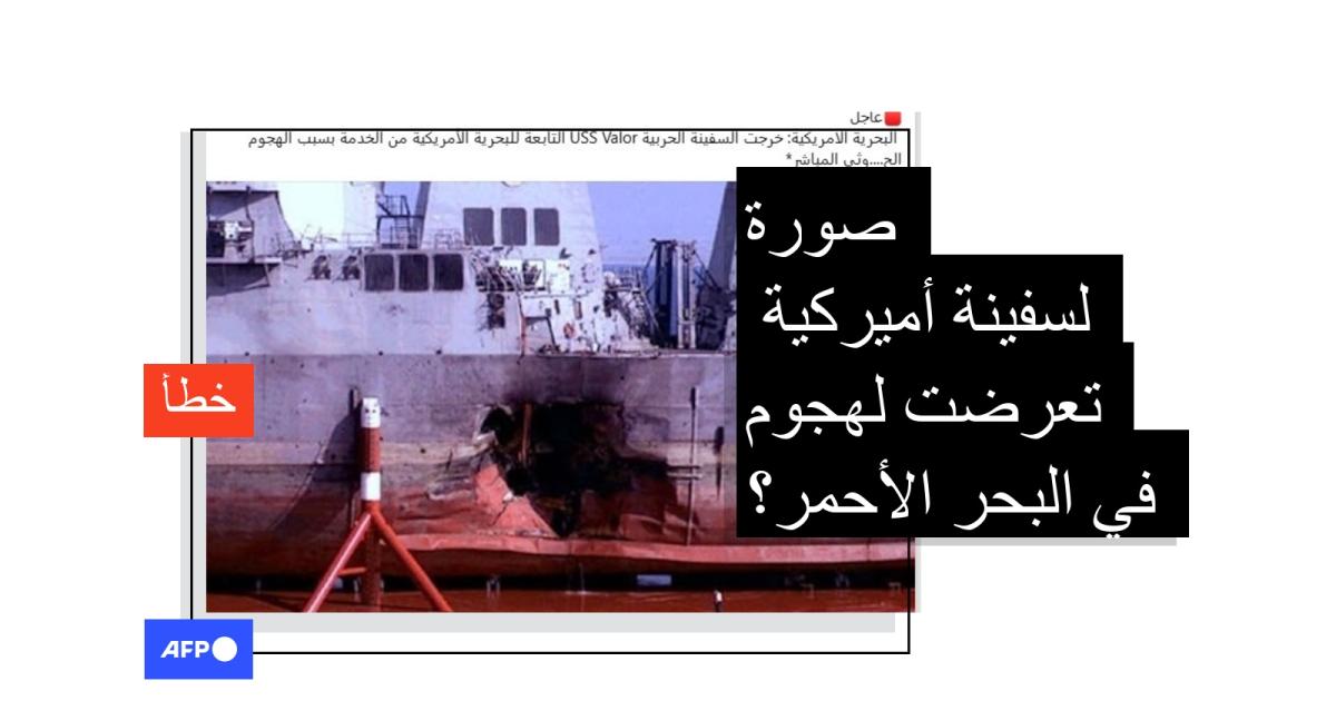 تبدو في الصورة سفينة لحقت بها أضرار. وعلّق ناشرو الصورة بالقول "عاجل: خرجت السفينة الحربية USS Valor التابعة للبحرية الأمريكية من الخدمة بسبب الهجوم الحوثي المباشر".
