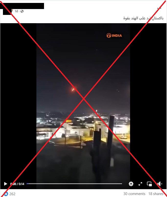 بعد أن شنّت الهند ليل الثلاثاء الأربعاء هجمات على مواقع في باكستان وضعت البلدين النووين على شفير حرب، تداولت صفحات وحسابات على مواقع التواصل الاجتماعي في منطقة الشرق الأوسط فيديو ادّعى ناشروه أنّه يُظهر هجوماً صاروخياً باكستانياً مضادّاً على مناطق هنديّة. صحيح أن باكستان سارعت إلى الردّ بقوّة على الهجوم الهندي، لكن الفيديو المتداول منشور قبل أشهر على أّنه من قصف إيراني على إسرائيل.