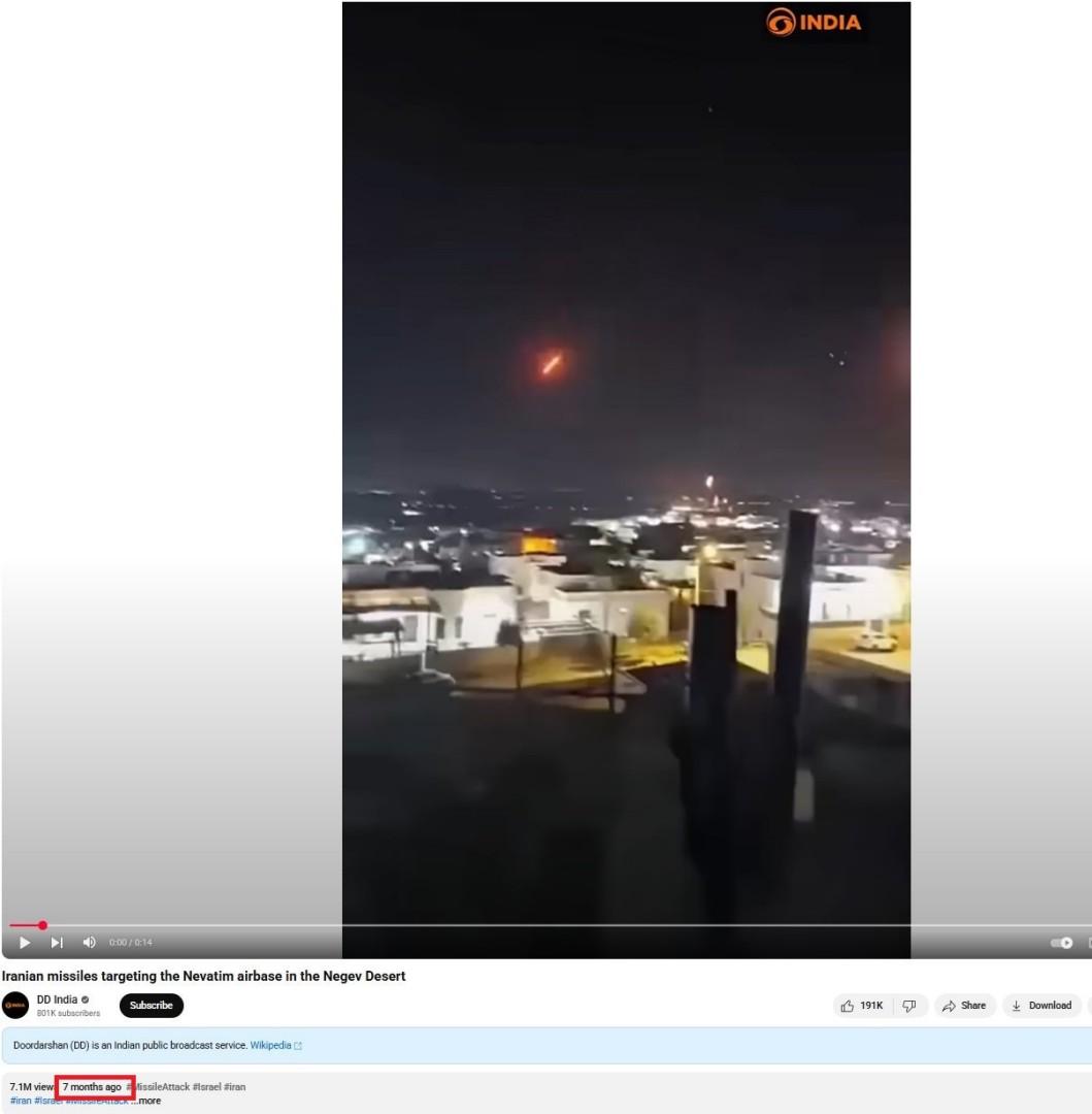ونشرت الفيديو وسائل إعلام عدّة، عربيّة وأجنبيّة، أشارت إلى أنّه يُظهر قصفاً إيرانياً على إسرائيل في الأوّل من تشرين الأول/أكتوبر 2024. (أرشيف 1 - 2 - 3 ).